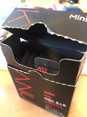 이 커피 스틱 하나에는 0.9g의 커피가 들어있다. 이 커피의 양은 일정하기 때문에 커피의 농도를 정하는 것은 물의 양이다. 그 다음은 개인의 취향이다. 커피의 쓴 맛이 좋은 사람과 그렇지 않은 사람.