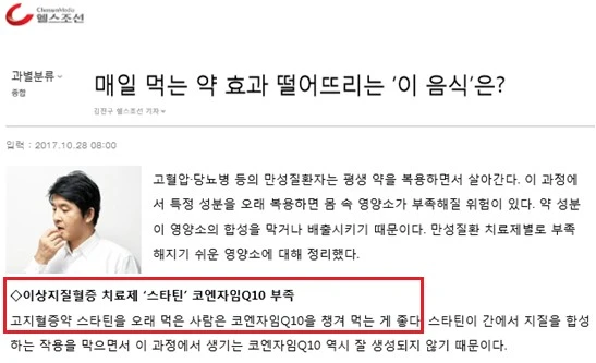 코엔자임Q10을 따로 챙겨서 먹는것이 좋다! 라는 내용인데요.