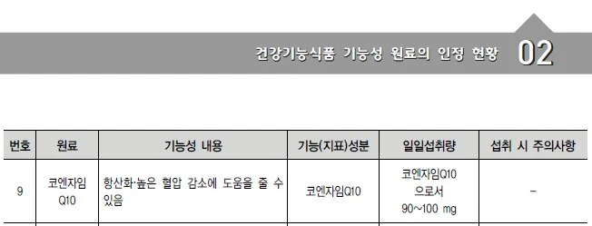 우리나라 식약처에서 발표하는 기능성 원료 인정 현황에서는