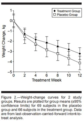 12주간 먹은 후, 가짜 약에선 4.1kg가