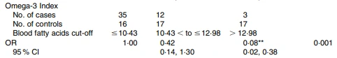 정상 대조군 50명의 오메가-3 인덱스를 비교했는데요.