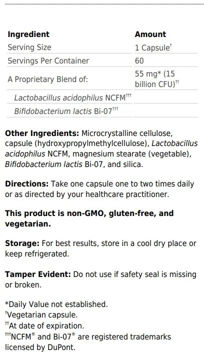 원료명에 NCFM과 Bi-07이라는 균주명이 들어가 있습니다.