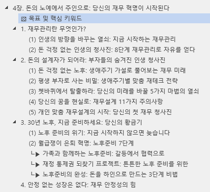 이 모든 내용들은 궁극적으로 당신이 돈의 노예가 아닌 주인이 되도록 돕는 것을 목표로 합니다. 재무관리의 기본을 확실히 이해하고 실천함으로써, 당신은 재무적 자유를 향한 여정을 시작할 수 있을 것입니다. 이는 단순히 돈을 많이 버는 것을 넘어, 진정으로 풍요롭고 안정적인 삶을 영위할 수 있게 해줄 것입니다. 이제 당신의 재무 혁명이 시작됩니다.