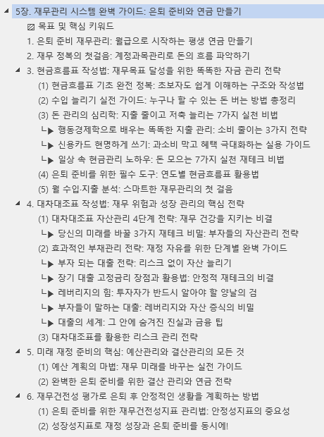자, 이제 우리의 노후 준비 여정을 시작해볼까요? 당신의 연금이, 당신의 황금빛 노후가, 그리고 당신의 제2의 인생이 기다리고 있습니다. 이 장을 통해 당신은 단순히 은퇴 자금 마련법을 배우는 것이 아닙니다. 평생 현금흐름을 창출하는 새로운 자산 구조를 설계하게 될 것입니다. 노후에 대한 불안으로부터의 자유, 은퇴 후 삶에 대한 자신감, 그리고 풍요로운 미래에 대한 희망. 이 모든 것이 바로 여기서 시작됩니다.당신의 두 번째 인생을 설계하는 이 여정, 함께 시작해볼까요?