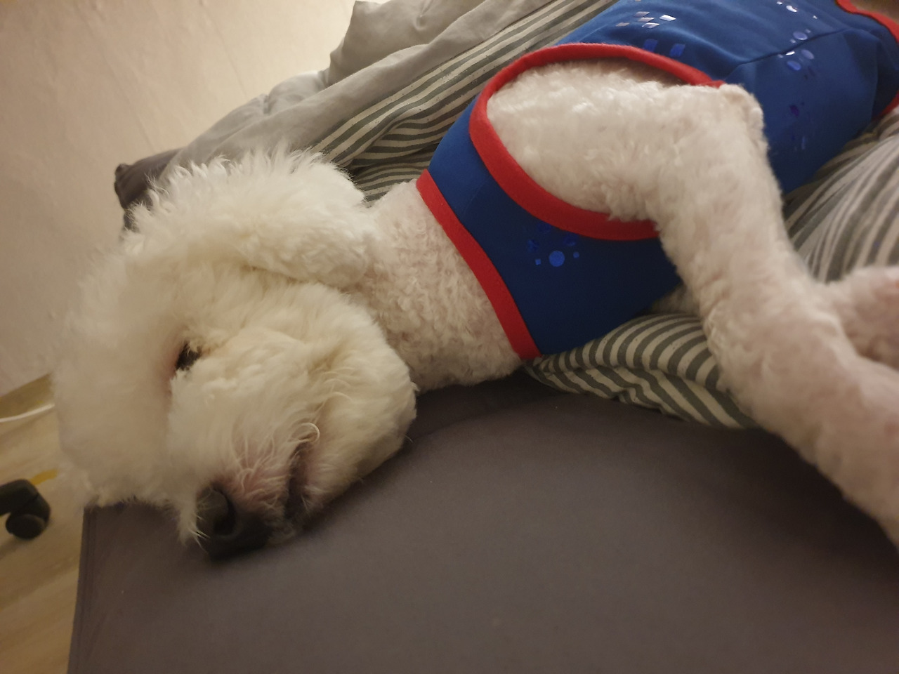 시저 소고기를 먹고 난 녀석은 신나게 놀았는지 침대에서 까불대다가 금세 잠이 들었다. 태평한 녀석.