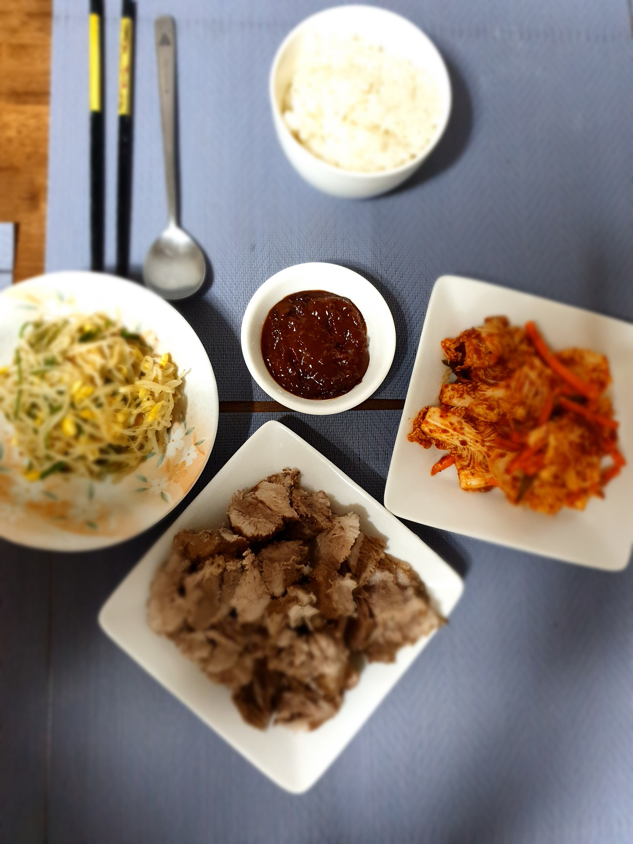 양념장다진 마늘 1, 매실액 2, 까나리액젓 1, 고춧가루 2, 참기름 약간, 깨, 가는소금 약간