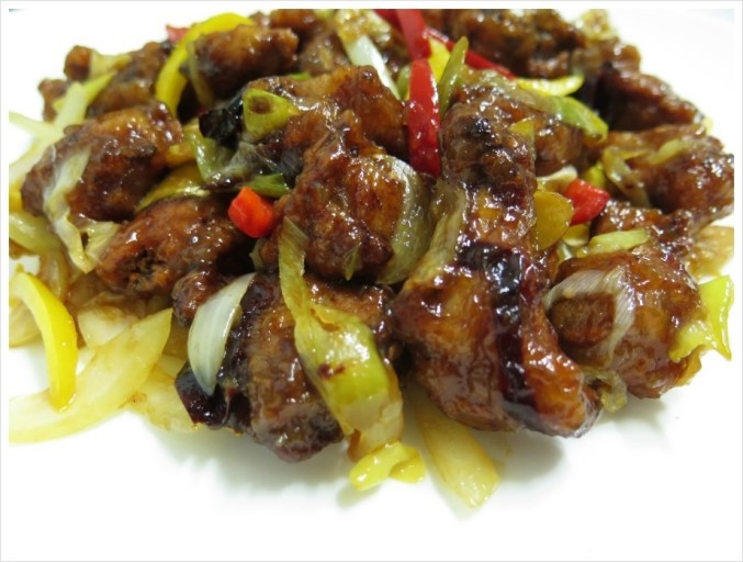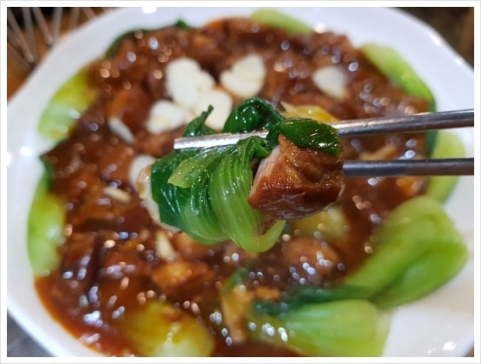 기름기로 번들번들한 검정 소스에서 돼지고기의 누릿한 냄새가 확 풍겼다. 비위가 상했지만 먹기는 해야겠기에 입에 넣었는데...