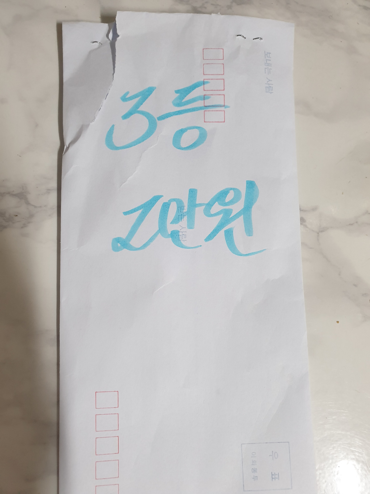 복불복 뽑기 식의 종이 하나를 톡 뽑았다. 확인하던 진행자가, "3등!" 하더니 박수를 짝짝짝 친다.