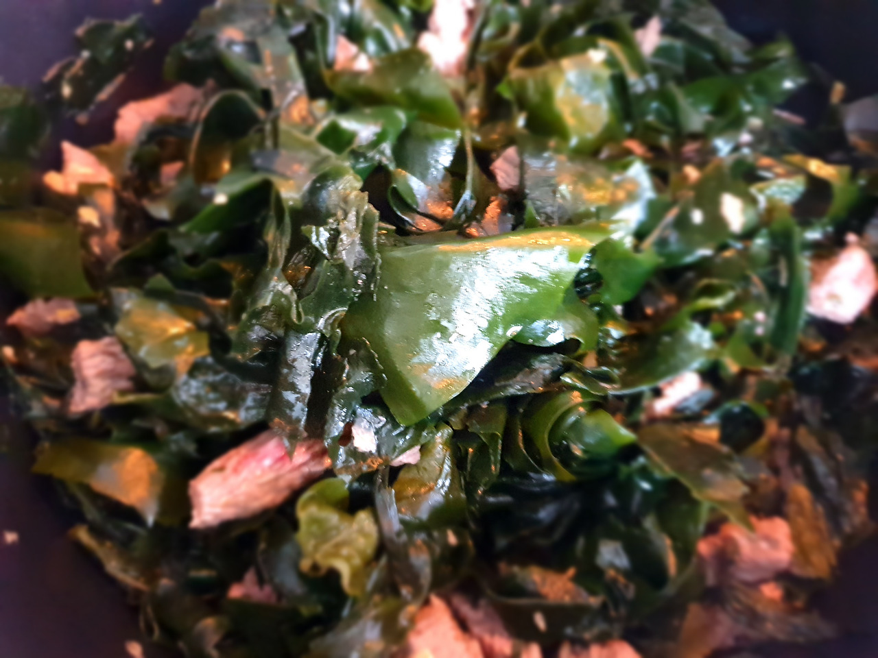 반쯤 볶아지면 자른 미역을 넣고 같이 볶는다.