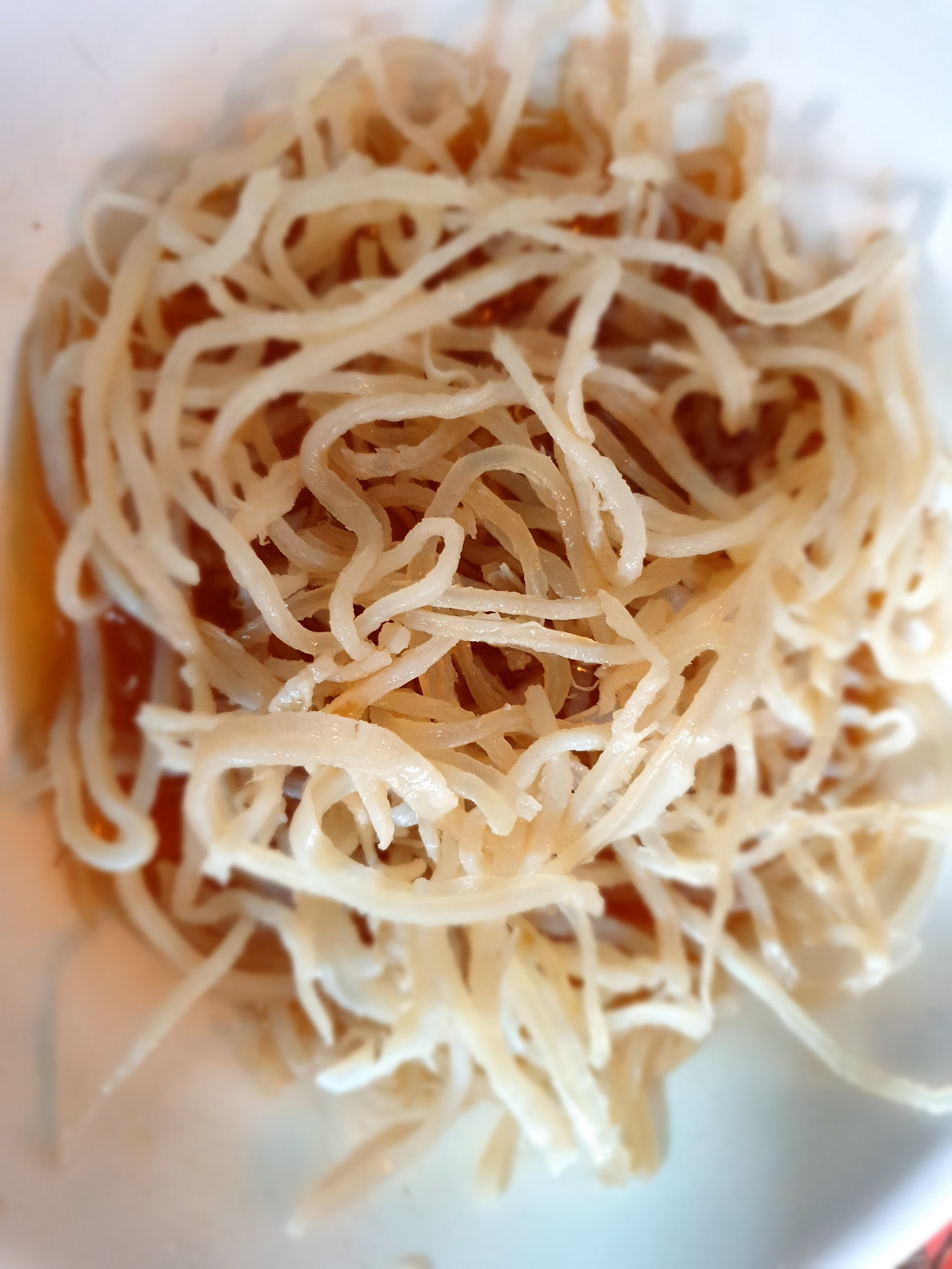 식은 골뱅이 국물 중 반은 백진미채(한 주먹)를 담가놓고.