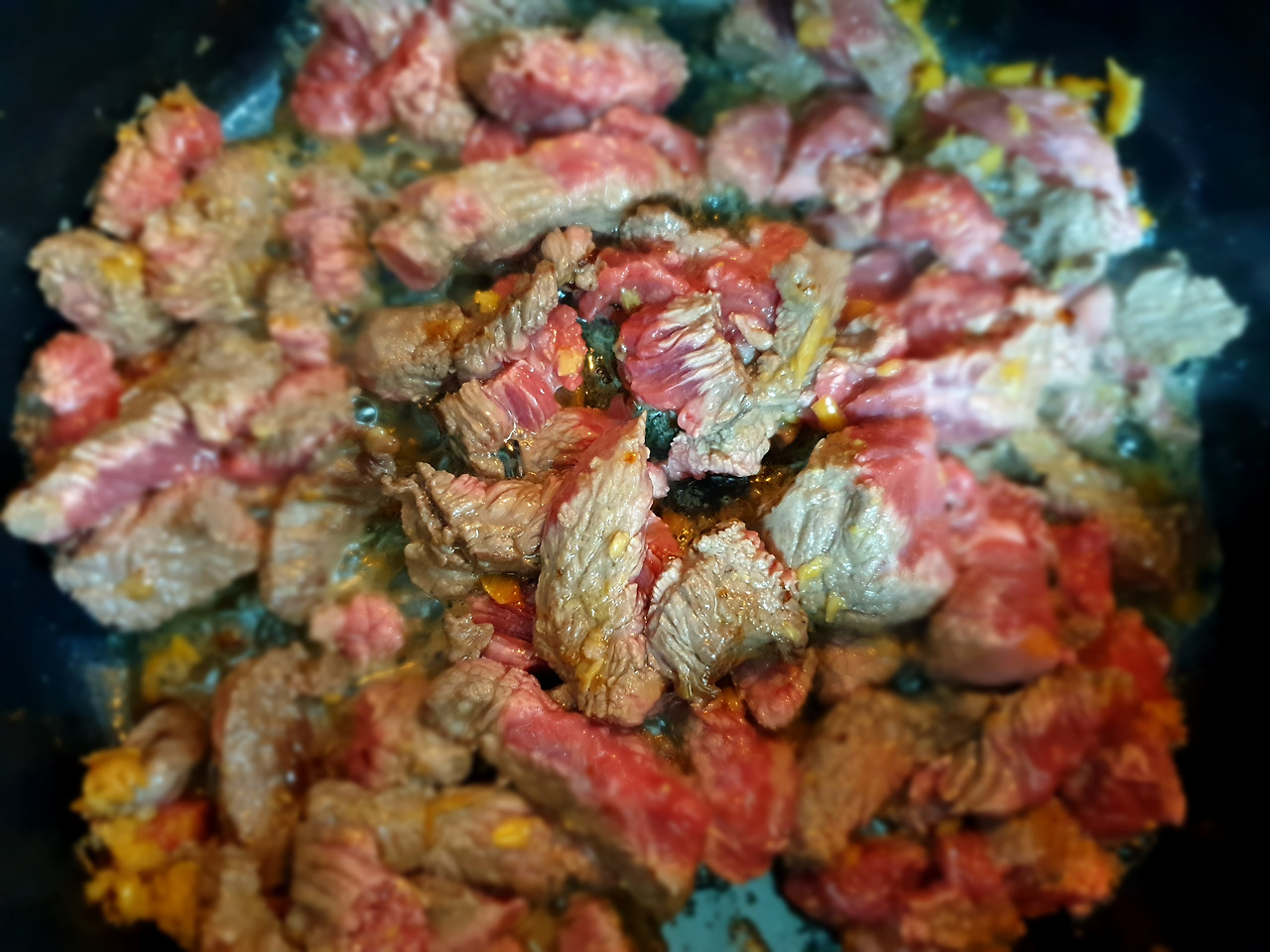 1차, 볶은 뒤 물을 자작하게 부어 졸인다.