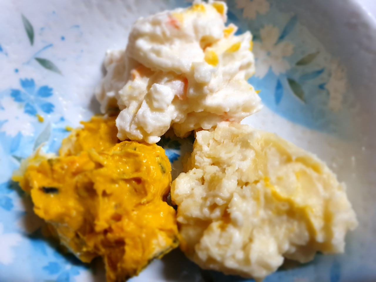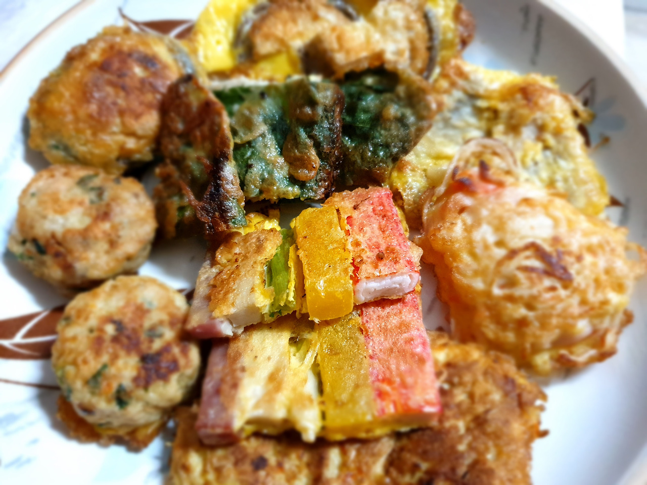 전도 다시 데우고, 나물(콩나물, 청경채, 근대, 취)이랑 샐러드(감자, 고구마, 단호박)도 골고루 담고.