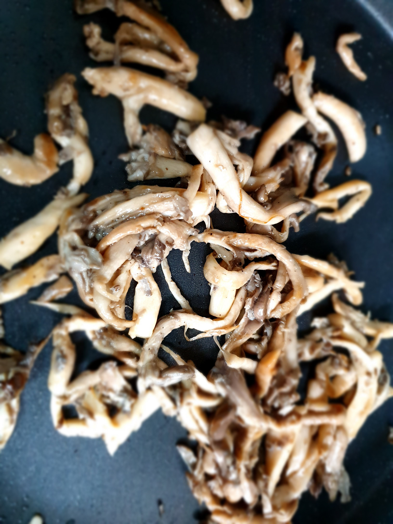 2. 느타리버섯은 가늘게 찢어서 씻은 뒤 물기를 꼭 짠다. 진간장, 후추, 참기름 넣고 조물조물 무친다.