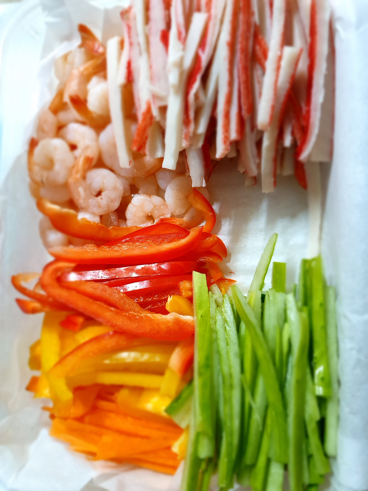1. 새우는 소금 넣은 물에 살짝 데친다.