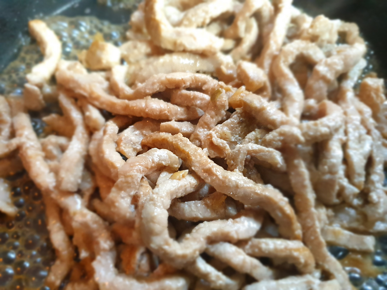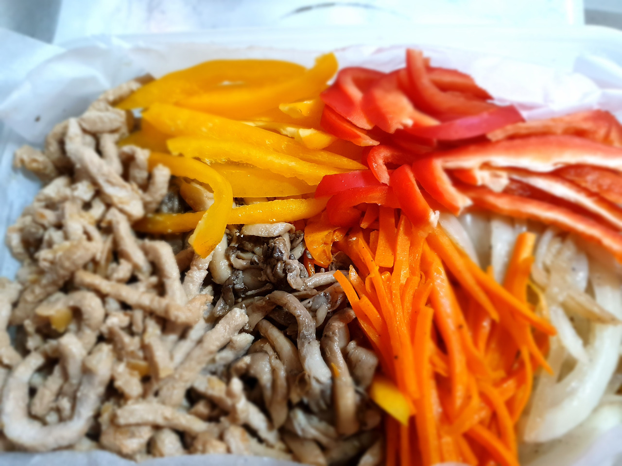 5. 1의 양파, 당근을 먼저 볶고, 느타리, 고기도 차례로 볶는다.