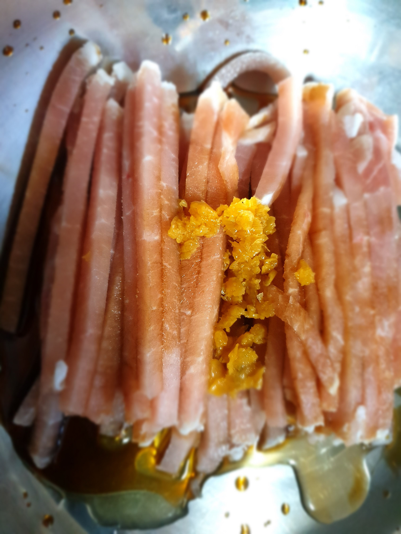 3. 고기는 진간장, 후추, 다진 마늘, 참기름으로 조물조물.