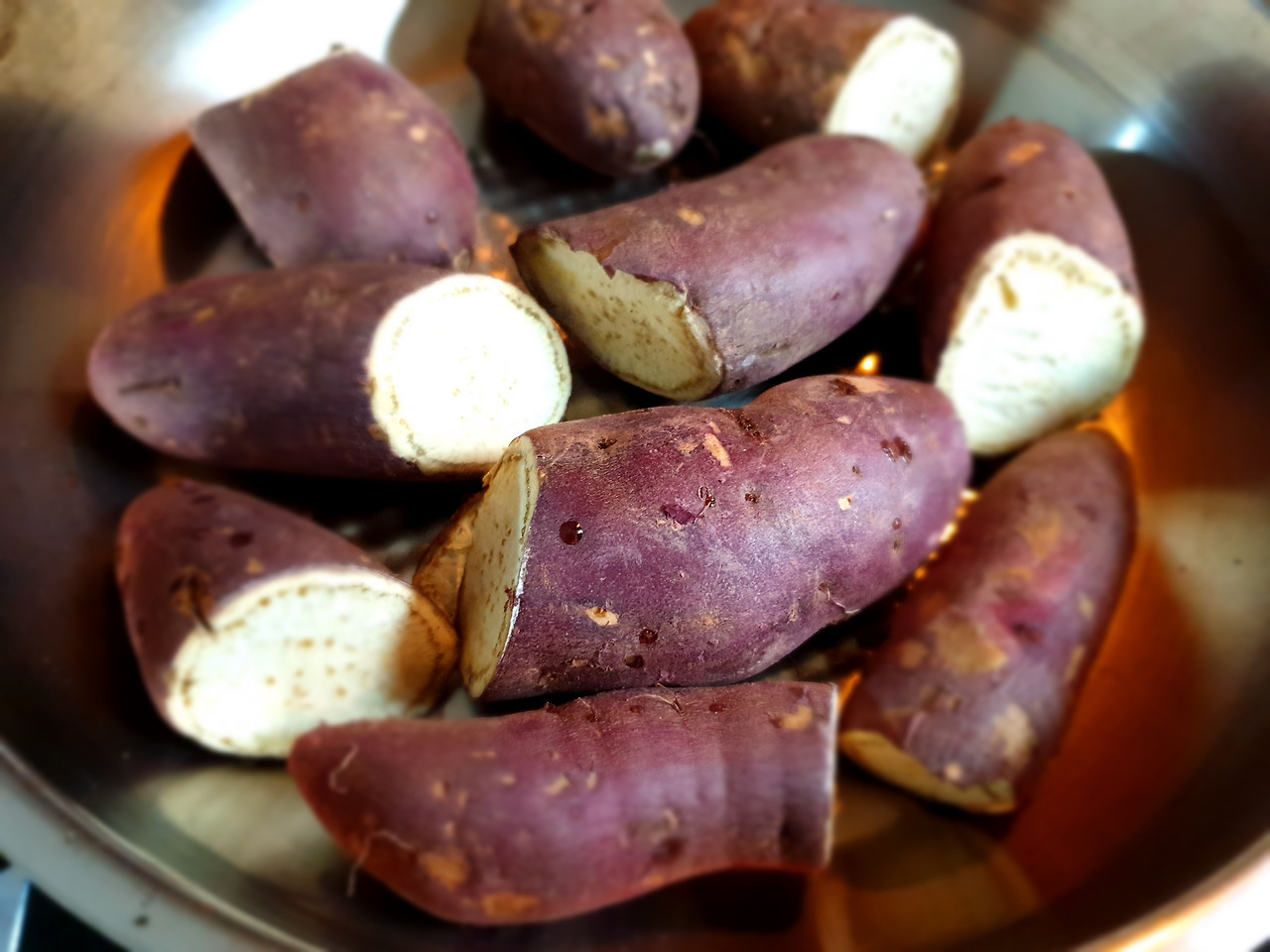 가스레인지에 불을 붙이고 몇 분 지나지 않아 달콤한 고구마 냄새가 솔솔 풍긴다. 그래, 이거지. 고구마가 익으며 치직거리는 소리에 군침이 돈다. 얼마나 익었는지 젓가락으로 쿡 찔러본다. 뻑뻑한 걸 보니 조금 덜 익었다. 자극을 받은 배가 욱신욱신. 아직 덜 익은 고구마 때문인지 달달한 냄새 때문인지 치직거리는 소리 때문인지... 무엇에 더 자극을 받았는지 모르겠다. ㅎ