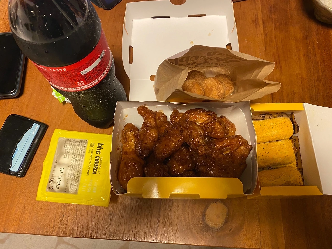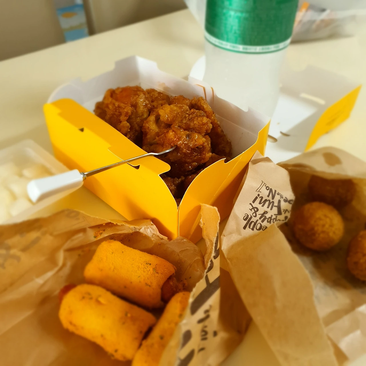 오프에서 만났으면 맛있는 밥이라도 같이 먹었을 텐데 아쉬워서 대신 치킨을 쐈다.