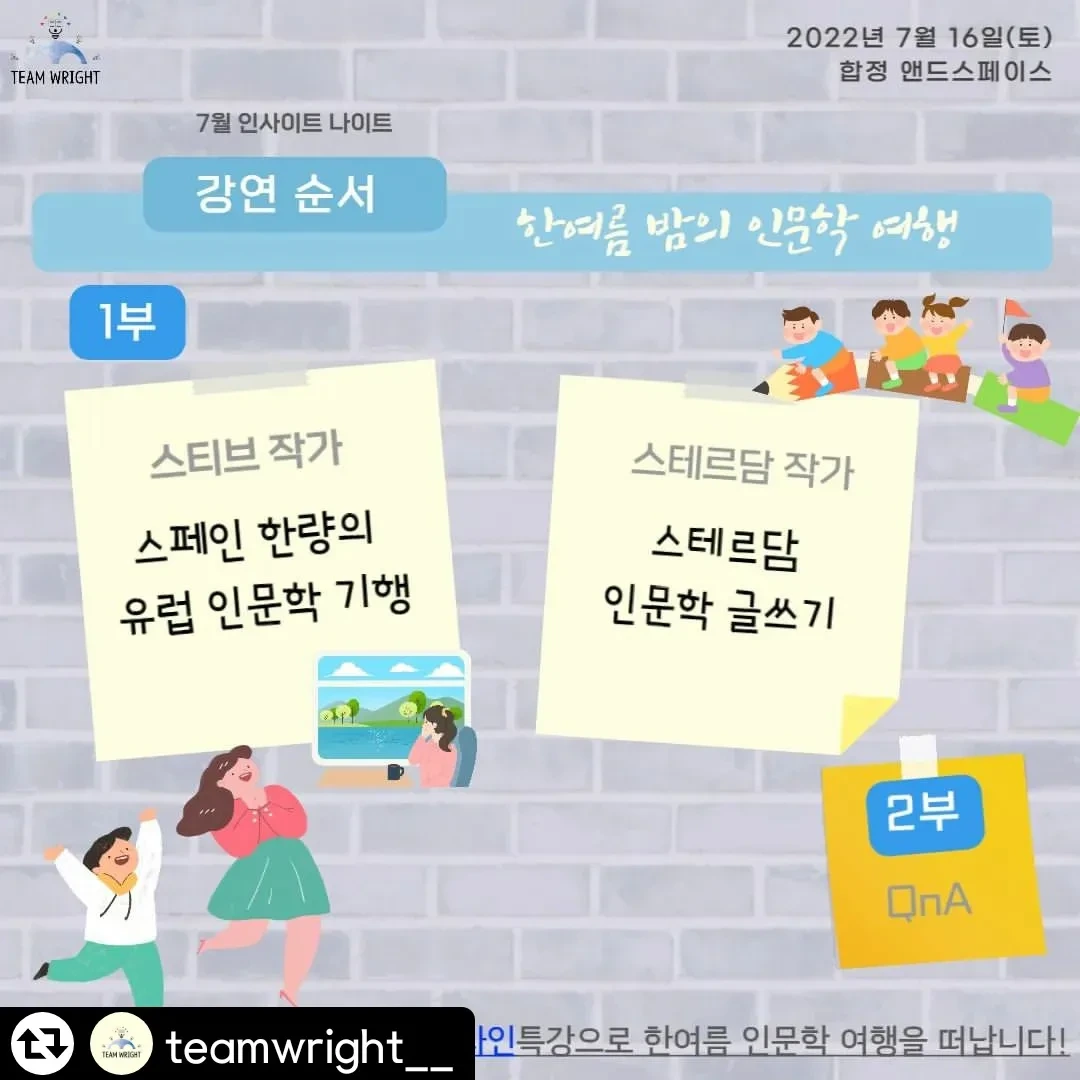 스페인에 사시는 스티브 작가님과 멕시코에 사시는 스테르담 작가님이 강연을 맡으셨어요.