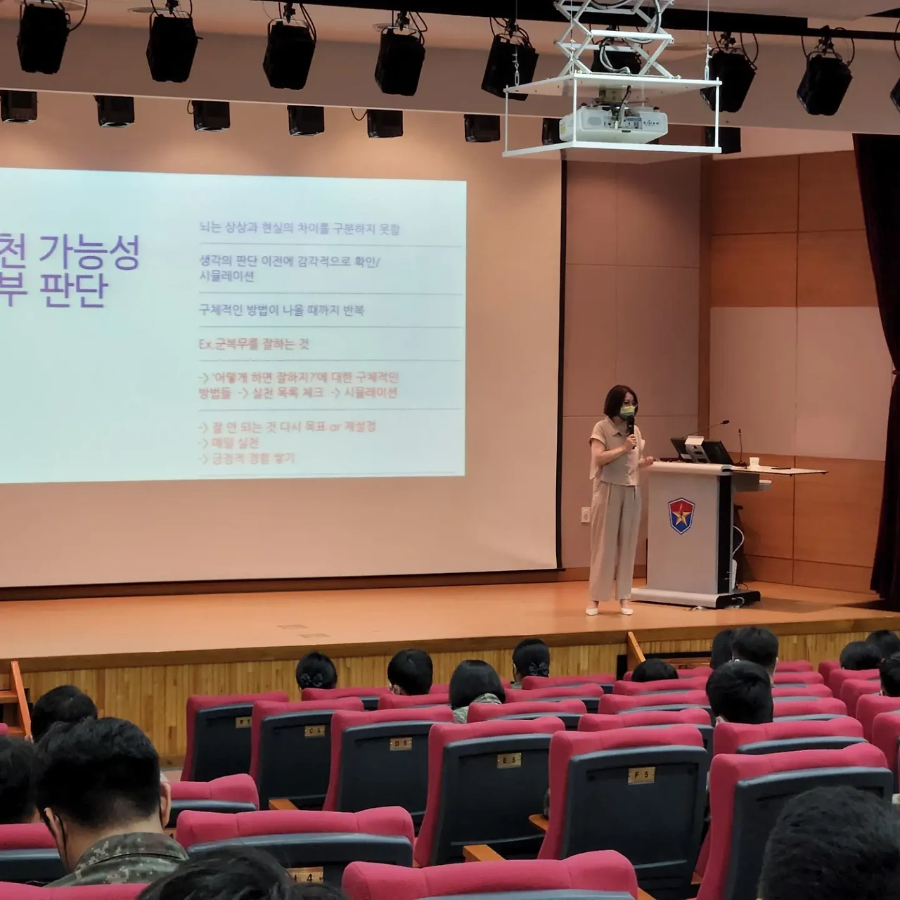 수요일은 충북 영동에 있는 육군종합행정학교에 강연이 있는 날. 전날 늦게까지 ppt 준비를 했다. 날이 더워서 그런지 버퍼링이 걸린 듯이 머리가 잘 돌아가지 않았다. 군대 간부들 대상의 강연이라니 부담도 되고, 아들의 군대 이야기가 얼마나 동기부여가 될지도 알 수 없었다. 군대 경험이 없는 나로서는 그저 막연하기만 했는데...