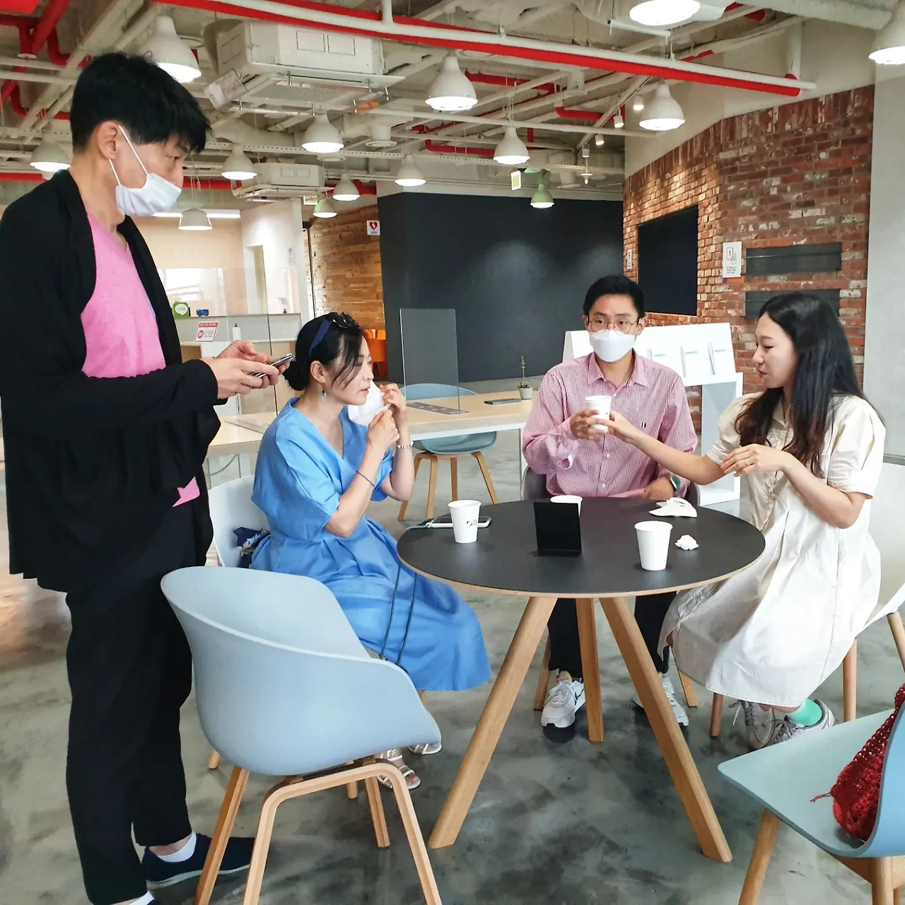 함께 사진을 찍고 피디님에게 녹음파일을 받아 로비로 나오니 위젤라tv 더덕님과 기피디님이 기다리고 계셨다. 1시까지 녹음을 마쳐야 해서 간단히 인사만 하고서 냐냐 작가님부터 다시 녹음실로 들어갔다. 아쉬운 마음에 위한솔 작가님에게 제안을 드렸다.