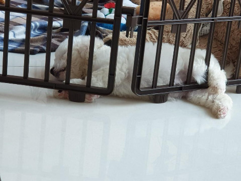 새끼 강아지는 밤마다 낑낑댔다. 울타리 밖으로 나오겠다고 버둥거려서 우리와 있을 땐 울타리도 치워주었다. 강아지는 짧은 다리로 온 거실을 돌아다녔다.
