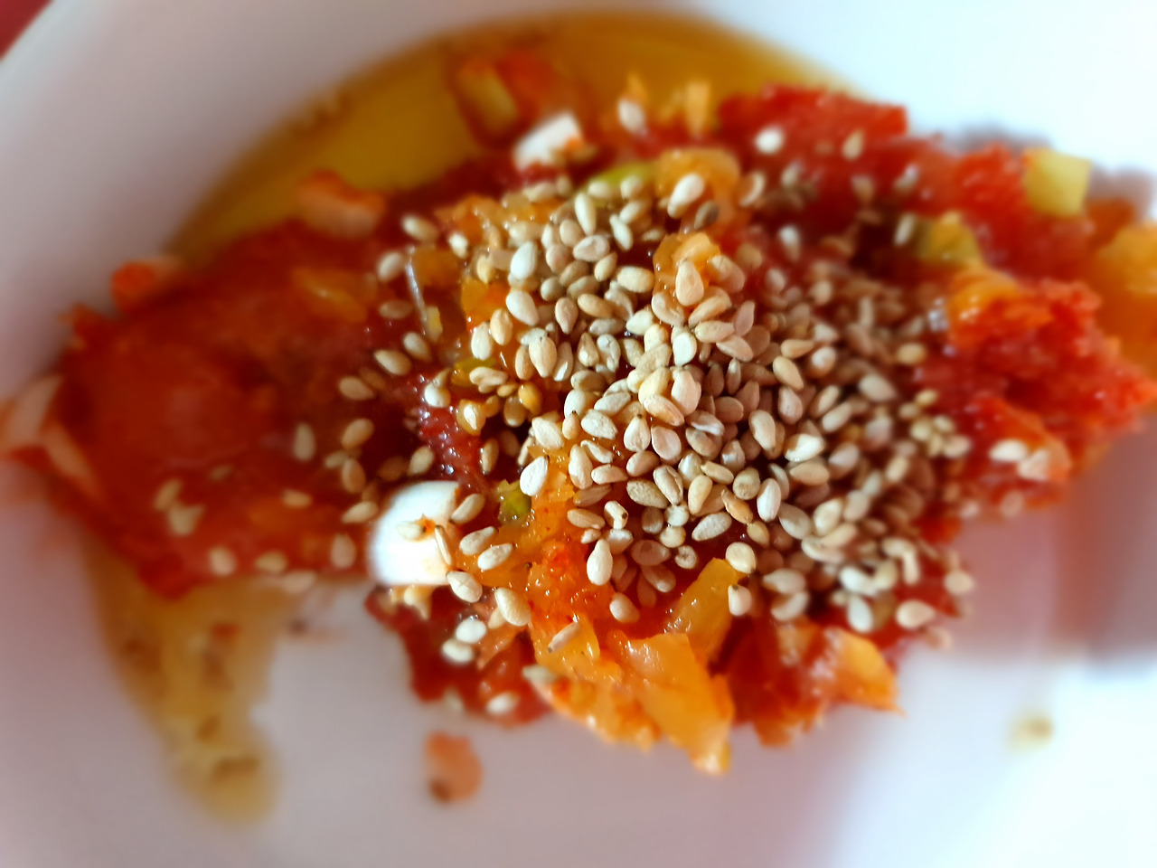 - 다진 마늘 1스푼, 까나리 액젓 2스푼, 진간장 1스푼, 매실액 2스푼, 고춧가루 2스푼, 들기름 1스푼(참기름이 떨어져 대체), 깨소금과 다진 파 1스푼(마지막에 넣는다)