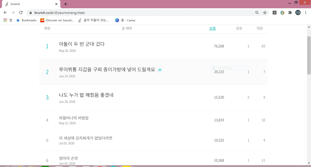 새 작품도 쓰지 않고 모처럼 쉬었다. 이사 때문에 정신이 없긴 했지만, 두 달 동안 브런치에서 재밌게 놀고 편하게 쉬었다. 가끔 드라마와 관련된 일도 하면서.(어떤 일인지는 비밀~^^) 6년째 해오는 일이고, 매일 하는 게 아니라서 부담 없이 즐거운 마음으로 하고 있다.