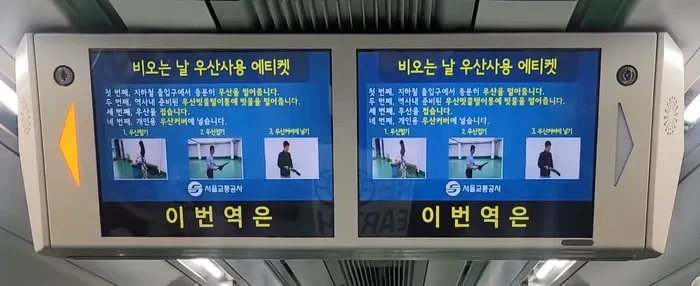 이미지 출처 : 서울시그러면 이어폰을 빼고 내가 어디쯤 와있는지 두리번거리고 안내음성에 집중하기 위해 귀를 쫑긋하곤 했다. 그런 민원이 많긴 했는지 2023년 7월부터 서울시는 전동차 내부 안내기 화면에 이제 도착하는 역 정보 노출을 늘리는 방향으로 개선했다.