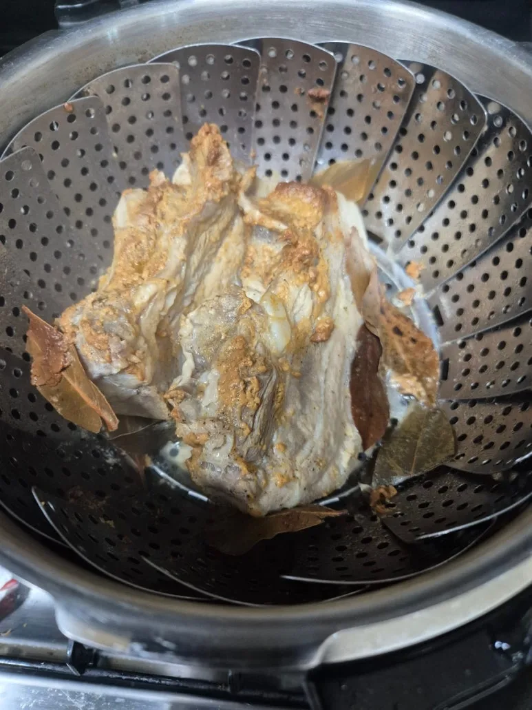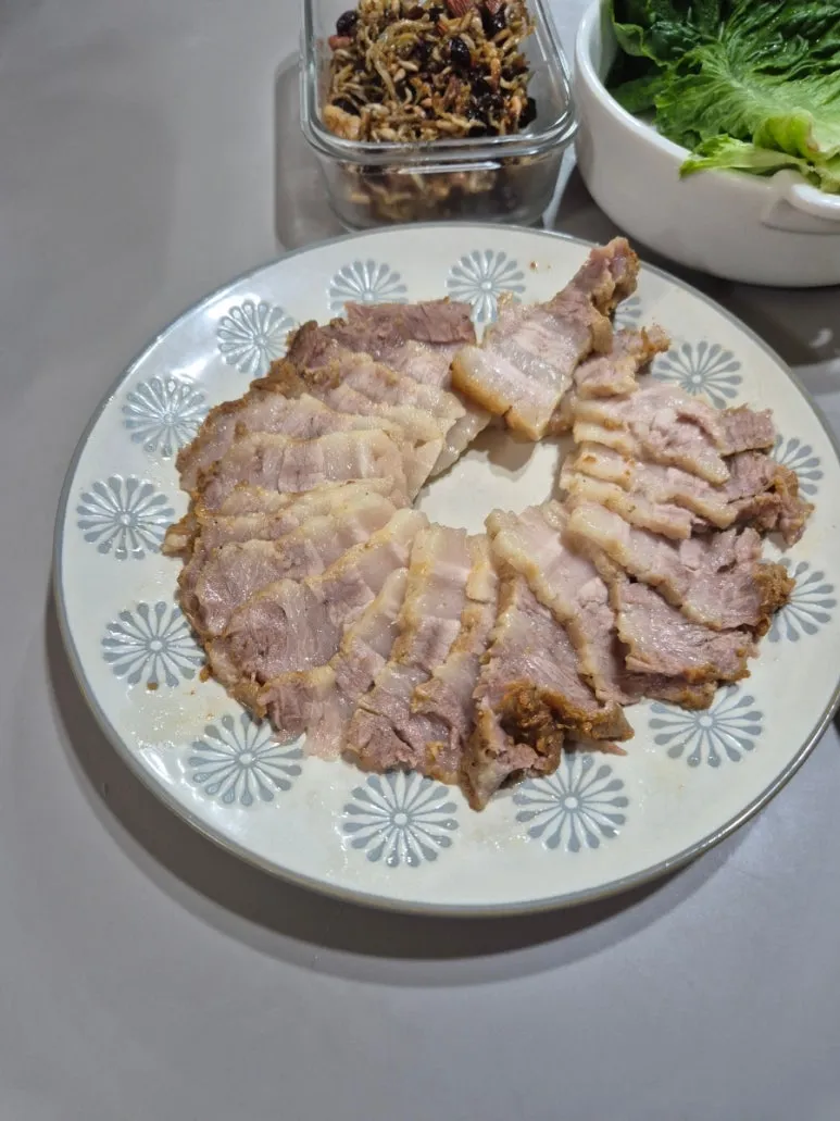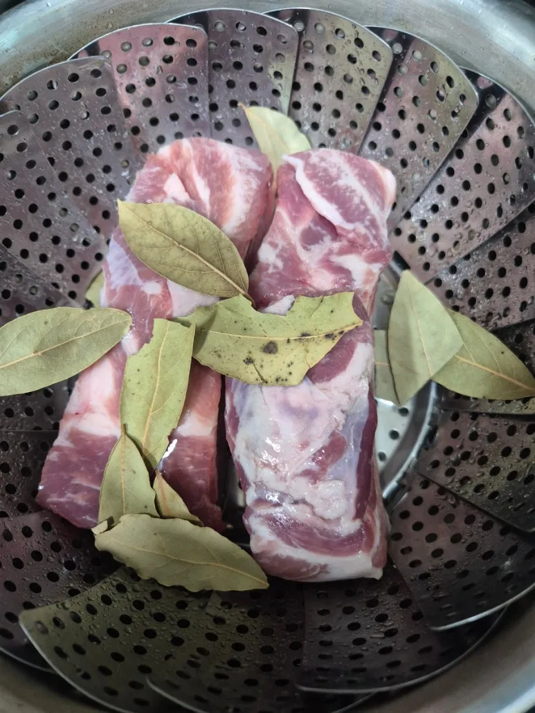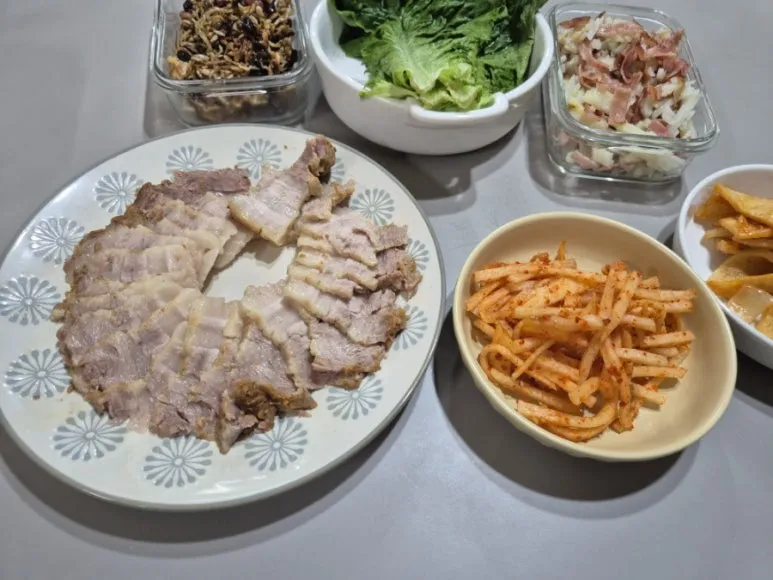 보쌈은 삼겹살이나 앞다리를 이용하면 됩니다. 고기가 가지런히 놓여있는 고기를 이용하는것이 좋아요. 압력밥솥에 물을 넣고, 채반 위에 올려서 삼겹살을 올려놓고, 월게수잎, 후추, 된장을 펴발라주고 압력밥솥에서 중불에서 30분 쪄줍니다.