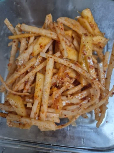 당뇨식단으로 무생채 만들때 주의해야할것은 감미료를 최소로 줄이는것이 중요하고, 그 단맛을 야채 또는 과일을 넣어주어서 천연 단맛을 내어 주는것이 중요합니다.