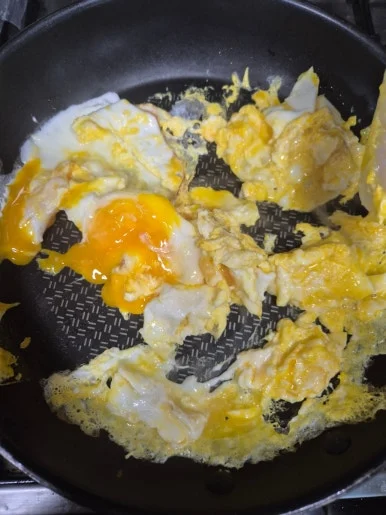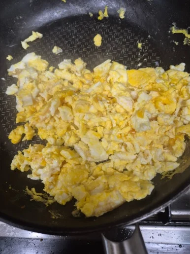 후라이 또는 스크램블로 조리할 수 있으며, 우유를 넣어 스크램블을 만들었다.