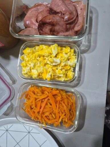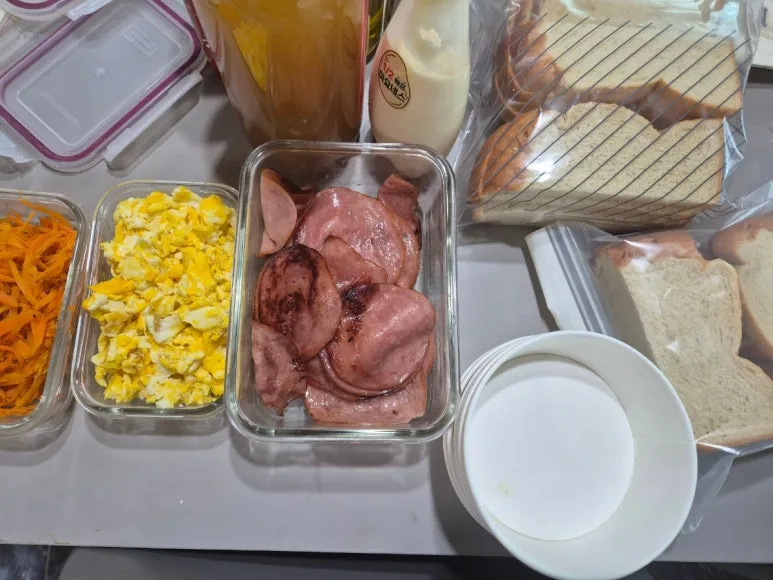 훈제오리햄, 당근, 계란, 상추, 현미식빵 등으로 구성된다.