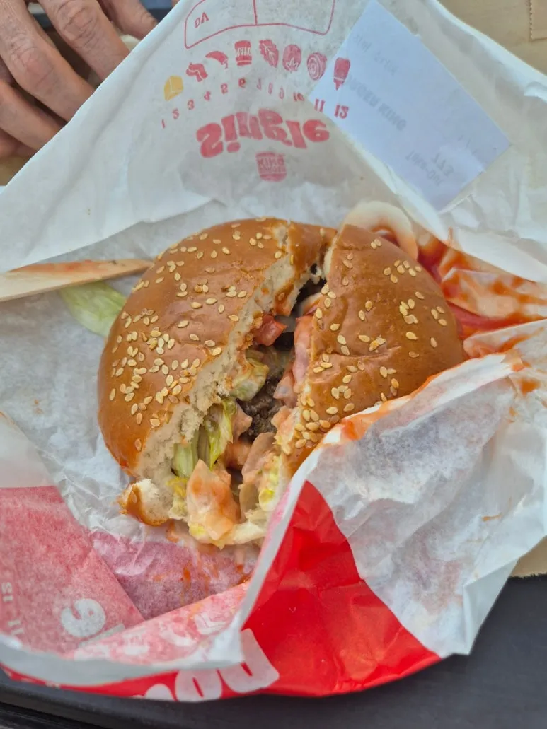 와퍼주니어 입니다. 버거킹 햄버거는 진짜 버거가 많이 큽니다. 밥식사로 먹는것 아니고 간식으로 3시~3시반쯤 먹는 중간 식사 개념으로 생각하면 됩니다.
