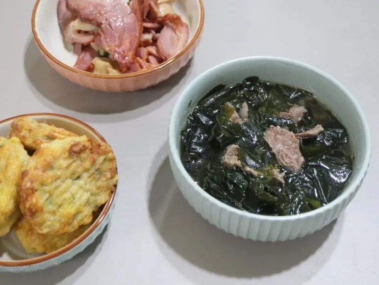미역국을 먹을때는 나물 반찬 보다는 생선구이, 두부조림, 계란말이등 단백질 음식과 함께 먹고 밥양은 70g 고단백+ 고식이섬유+저탄수화물 식단으로 구성하면 당뇨식단으로도 좋고, 영양소 골고루 챙겨서 먹을수 있다.