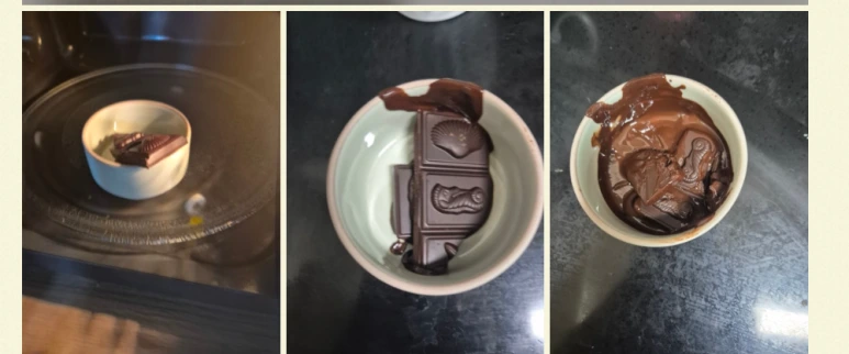 1.다크 초컬렛90% 20g 은 전자레인지로 30초씩 잘라서 녹여준다.