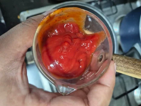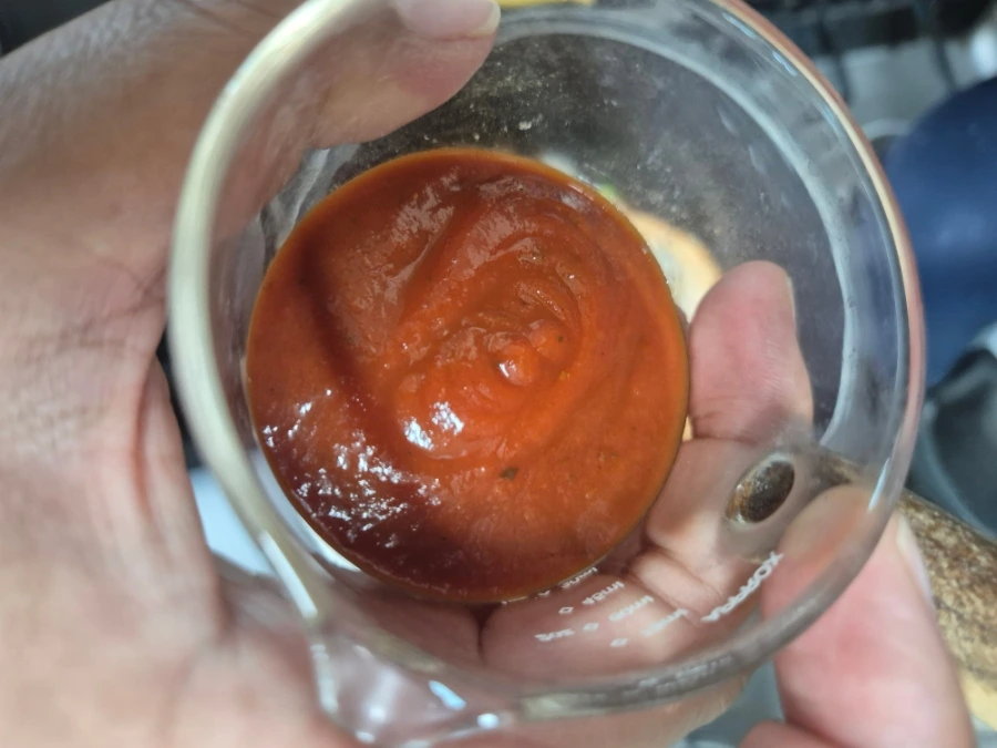 바닥에는 토마토소스와 하프케찹을 함께 더해서 섞어주었어요.