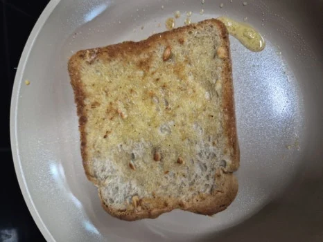 통밀 식빵 1장(필요 시 1.5장)을 준비해 무염버터를 얇게 펴 바르고 토스터나 팬에서 노릇하게 구워준다.
