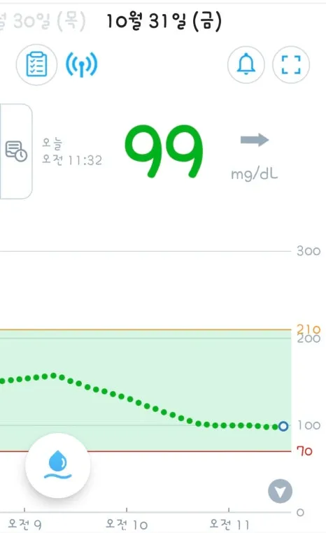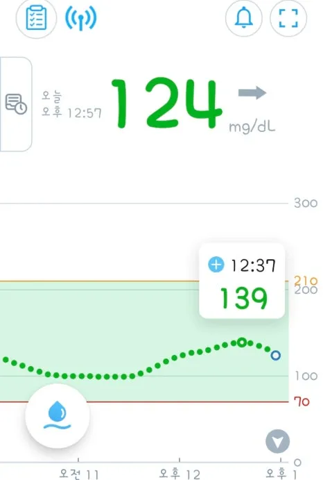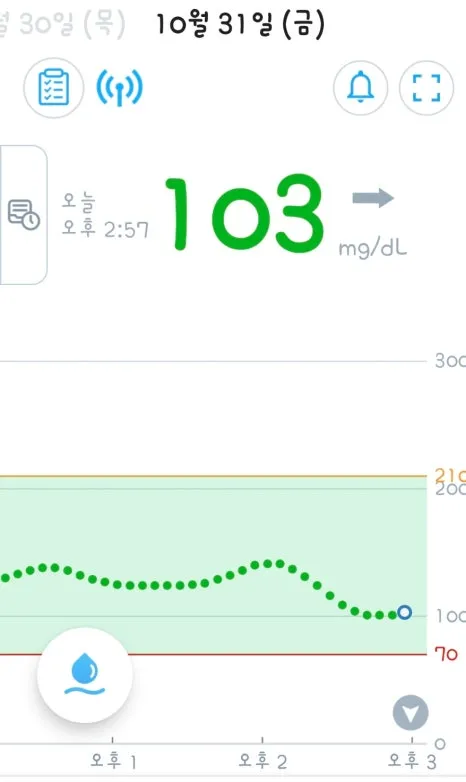 약 2시간 후에는 103mg/dL로 안정적으로 내려왔습니다.