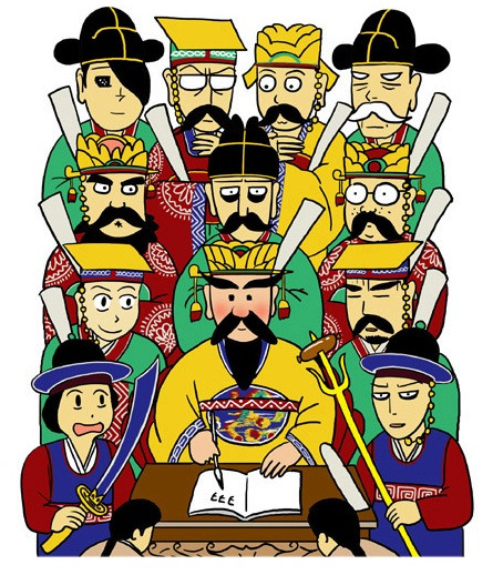 마치 그 자리에 앉아 주인공이 찾아오면 정해진 결정을 내리는 역할을 받고 가만히 대기하던 사람들 처럼...