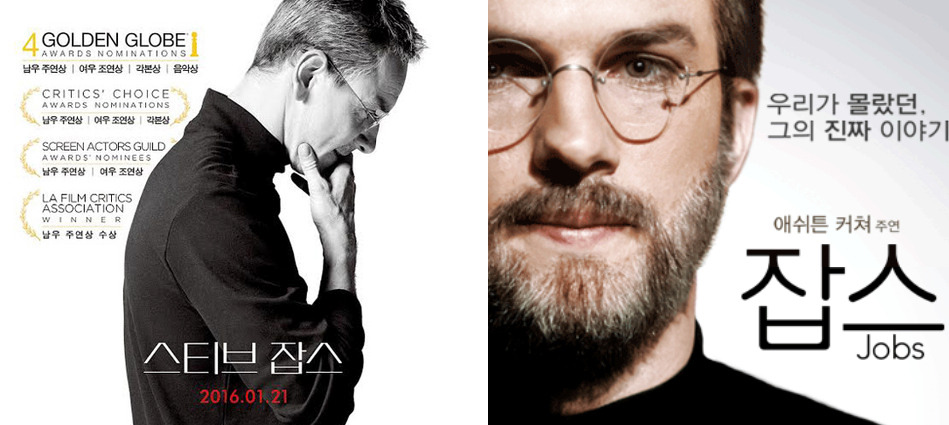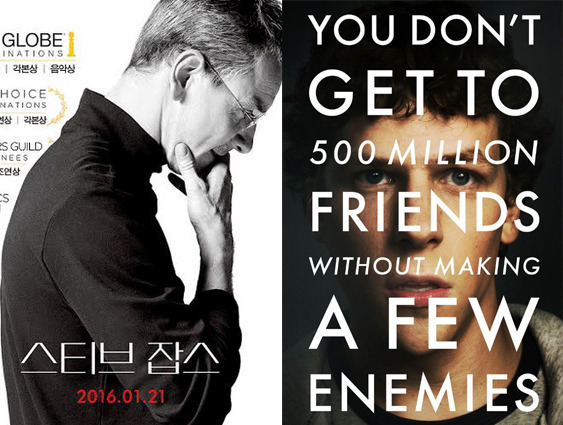 시대를 이끈 IT천재의 이야기 여서? 둘 다 아론 소킨의 각본이라서? 물론 둘 다 맞지만 사람들이 인정하는 큰 업적을 이룬 이 천재들의 감추어진 다른 인간적 실패의 부분을 메인으로 다룬 면에서 그런 듯하다.