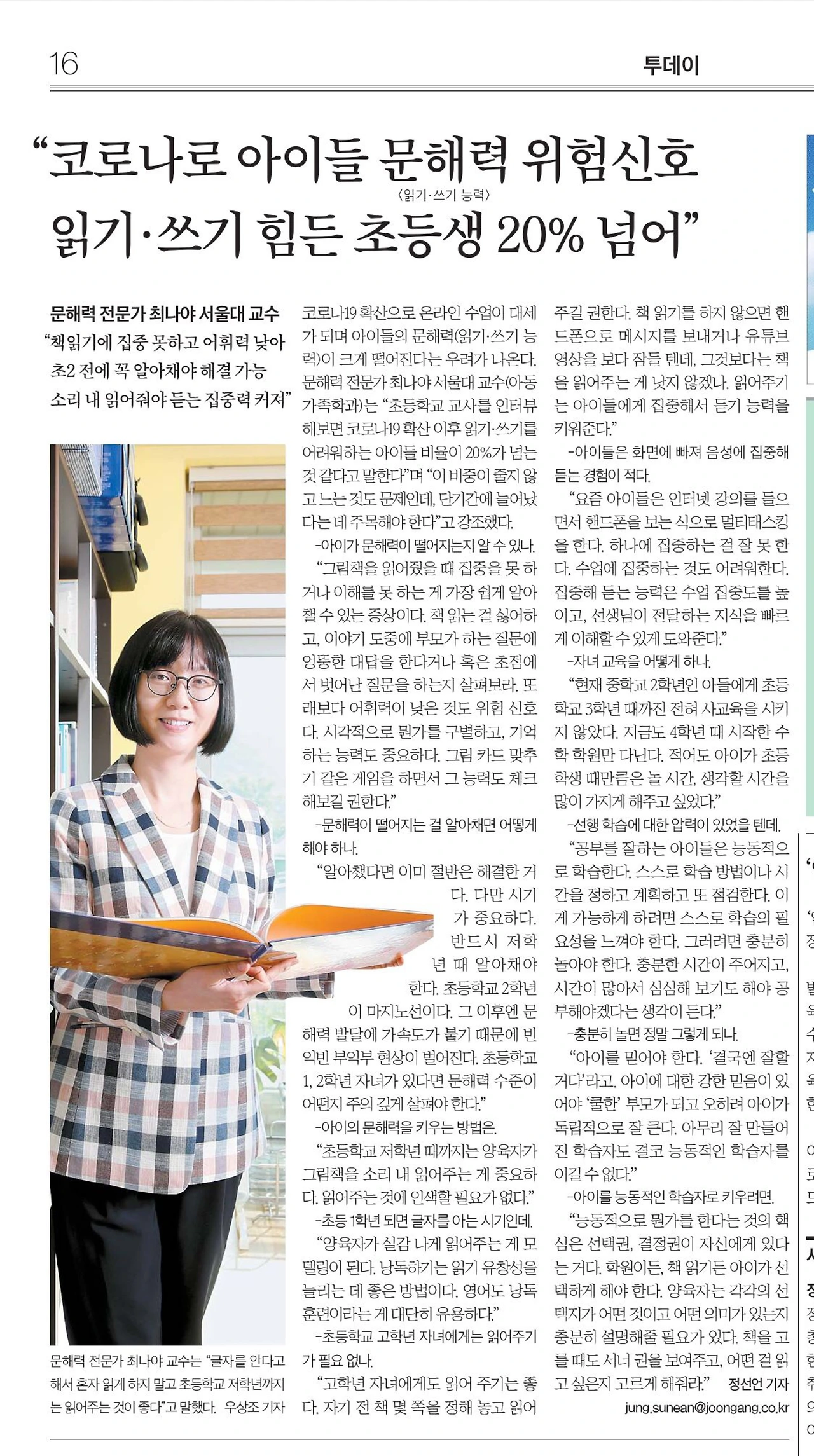 최근에 EBS에서 나온 이후로 '문해력'이란 말이 유행이다. 글자를 알지만 문장의 의미를 파악하지 못하면 문맹은 아니지만 문해력이 없는 사람이라고 한다. 오늘 실린 두 개의 기사는 같은 이야기를 하면서 다른 이야기를 하는 것 같다. 핸드폰과 타블렛 사용이 늘면서 책을 읽는 시간이 줄어들고 게다가 최근에는 코로나 팬데믹으로 학교에서 수업을 하는 시간이 줄어들면서 아이들은 글을 읽는 절대적인 시간이 줄어들었다. 그래서 긴 글을 읽거나 강의에 오랜 시간 집중하는 걸 힘들어한다고 한다. 내 생각에는 조기 영어 교육의 영향도 있다는 생각이 든다. 한국어 어휘력이 풍부해져야 할 시기에 한국어를 사용하는 것에 제한을 받고 영어 교육으로 간섭되는 것이 전혀 영향이 없을 것 같지는 않다.