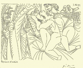 예술작품에서 성적 욕구의 왜곡, 타락, 좌절의 양상들이 묘사되는 것은 인간의 가장 본능적인 행태에 대한 관심에서 시작된다. 피카소(Pablo Picasso)의 회화 속에 드러나는 에로티시즘은 종종 외설성 짙은 춘화에 가까워 충격을 준다. 피카소가 80대의 노인이었던 1960년대 후반 그는 르네상스 시대 거장들의 변태적인 성 욕구를 그림 속에 드러냈다. 미켈란젤로(Michelangelo)는 화가와 모델의 정사 장면을 훔쳐보는 관음증 환자로 그려져 있으며, 프랑스 후기 인상파 화가 드가(Edgar De Gas)는 늙어 성행위가 불가능했음에도 섹스에 대한 욕구에 사로잡혀 유곽을 배회하는 추하고 불쌍한 호색한으로 묘사된다. 피카소는 사라지지 않는 욕망에 대해 이렇게 말한다. "나이가 들어 담배는 끊었지만 피고픈 마음은 여전히 남아있는 것처럼 욕망도 마찬가지다." 그 끈질긴 욕망이 예술로 표현될 때, 예술과 외설의 경계가 모호해지지 않을 수 없는 것이다.