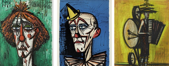베르나르 뷔페의 작품은 구상적인 묘사를 통해 역사, 죽음, 성, 대중문화, 정치 등 수많은 구체적 현상들을 표출하고 있으며 20세기의 사건들과 인물들에 대해서 그려내고 있다. 뷔페가 그려내는 인간의 모습은 외롭고 슬프다. 그들은 서커스의 광대이며 암울한 도시의 이방인들이다. 그는 한 인터뷰에서 어떤 사람으로 기억되고 싶은지에 대한 질문을 받고 이렇게 답했다고 한다. “모르겠어요... 아마도 광대일 것 같아요”