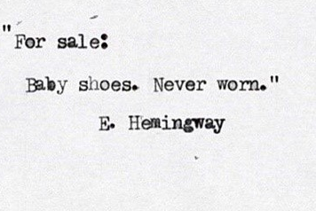 미국의 소설가 헤밍웨이는 친구들이 농담처럼 몇 마디 말로 심금을 울릴 소설을 써보라고 권하자 그 자리에서 이런 글을 썼다 합니다. “판매 중: 아기 신발. 신은 적 없음”