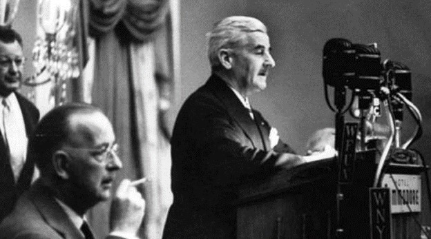 노벨상 수상 기념 만찬에서 연설하는 윌리엄 포크너(1950)
