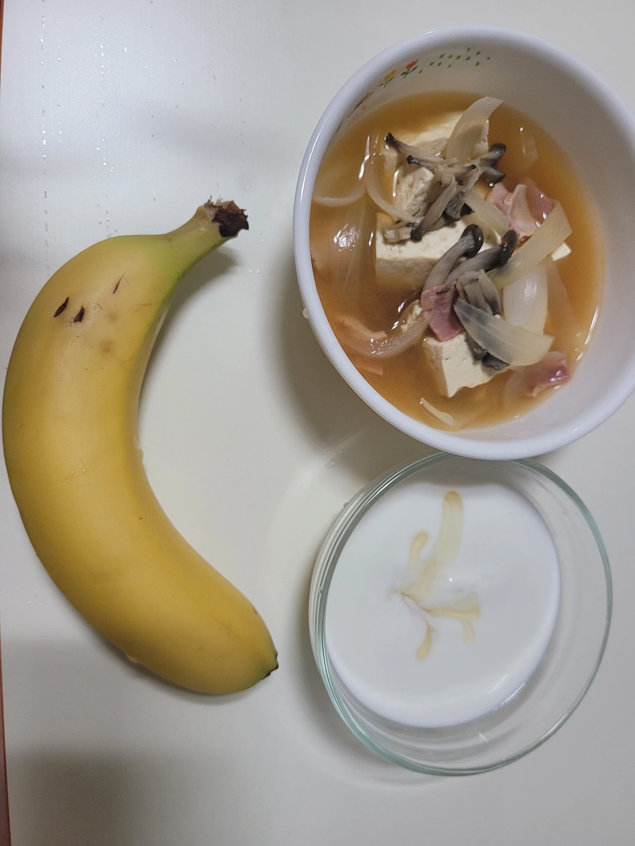 저녁으로 먹은 된장국에 요거트+꿀 바나나, 간식 토마토 된장국을 끓여서 먹었다. 느타리버섯을 샀는데 이게 가성비가 어마어마하다. 양이 굉장히 많다. 소량으로 팔면 좋겠다. 그릇과 바나나를 세팅하니 꼭 눈과 웃는 입 같다. 나는 이런 스마일을 보면 기분이 좋아진다.
