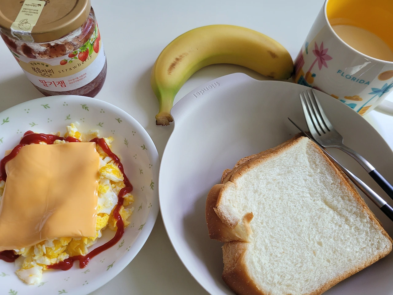 아침으로 먹은 빵과 계란 바나나 요거트 등아점을 먹었다. 빵에 딸기잼 발라 먹으면 정말 맛있다. 우유를 좋아해서 그동안 너무 많이 먹어서 조금 끊었다가 먹어보려고 우유 대신 요거트를 먹었는데 역시 빵에는 우유가 진리다. 곧 우유를 다시 살 것 같다.
