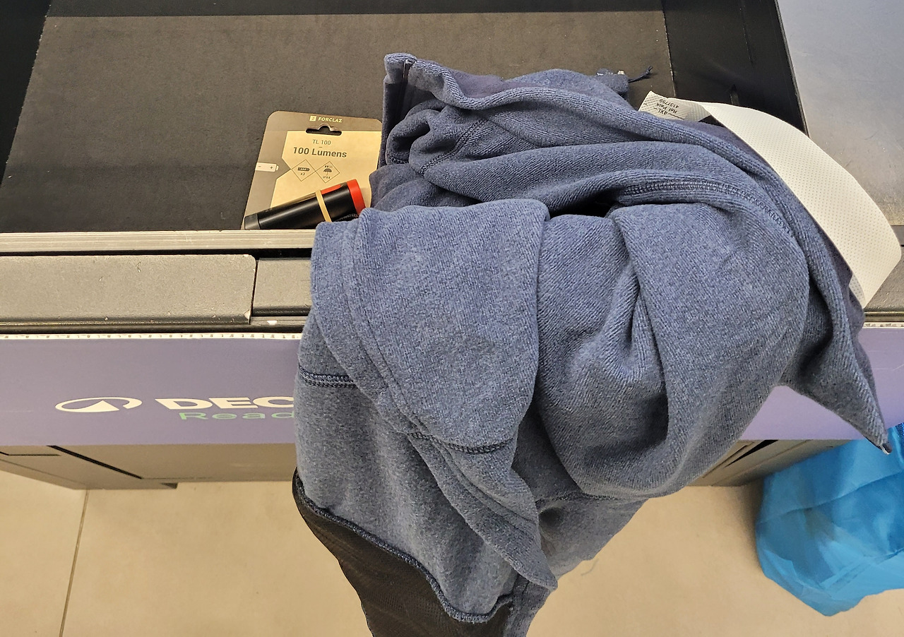 계산대 위의 내 후리스와 랜턴, 다해서 24.98 유로차마트린 역으로 다시 돌아왔는데