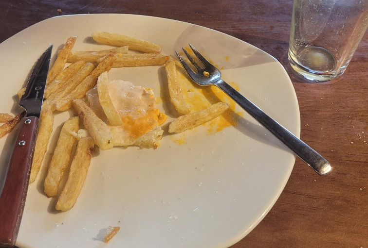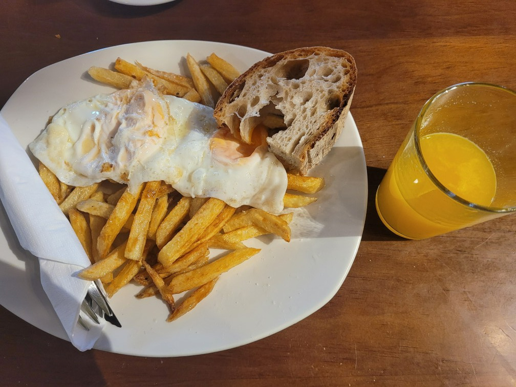 입맛은 없어서 계란과 감자튀김을 남겼다.